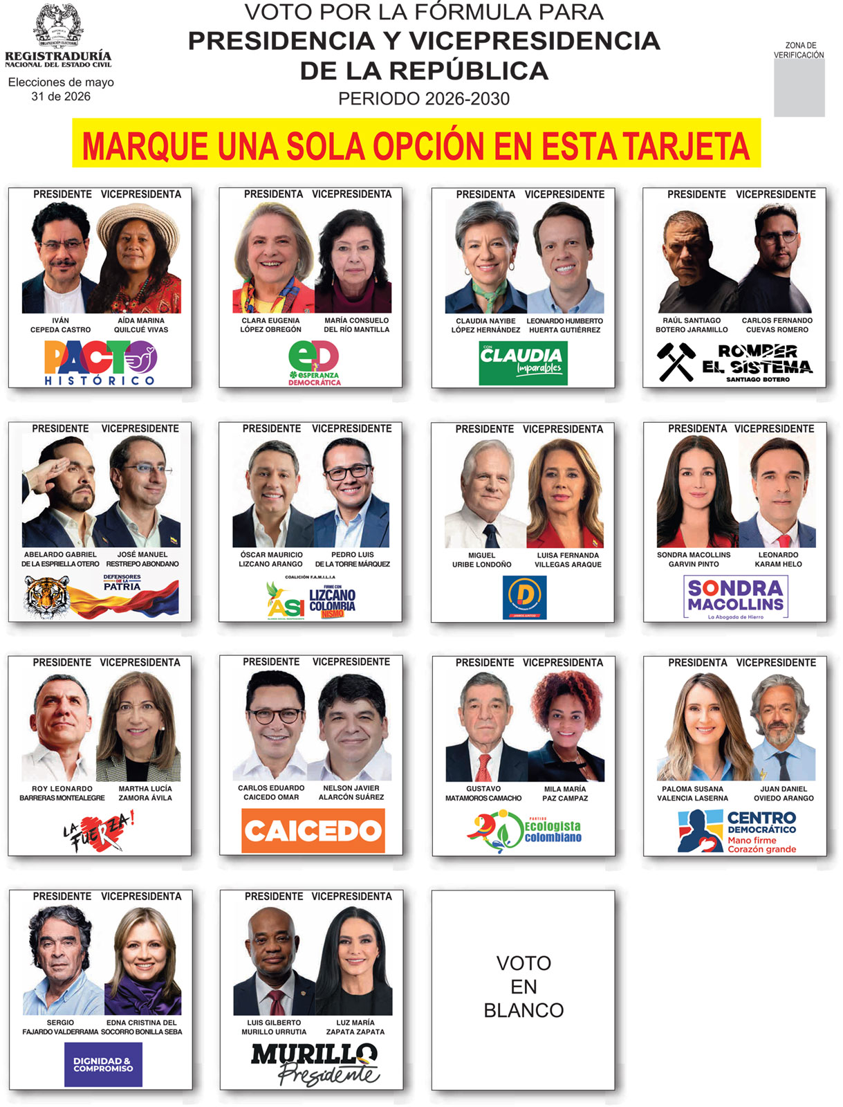 Tarjetón Primera Vuelta